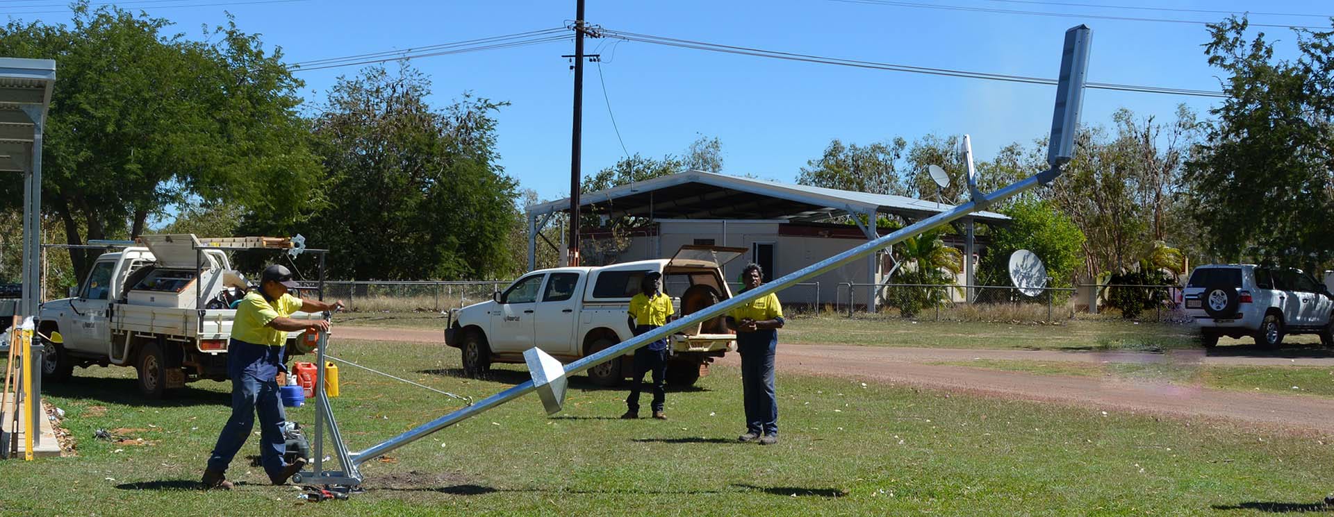 Our range of tilt poles eliminates the need for elevating working platforms and heavy lifting equipment such as cranes, which in turn eliminates O.H&S issues. Other benefits include easily accessing equipment at ground level in a matter of minutes through controlled lowering. This is done via a detachable manual winch system or by simply walking the pole up or down with one or two persons.