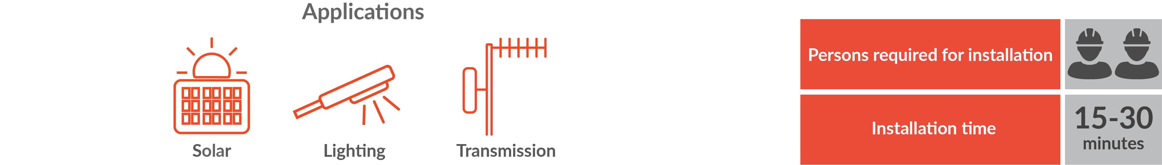The pole is easily raised by walking it up to vertical position, then securing it to the base plate. No lifting equipment is required and all work is carried out at ground level.