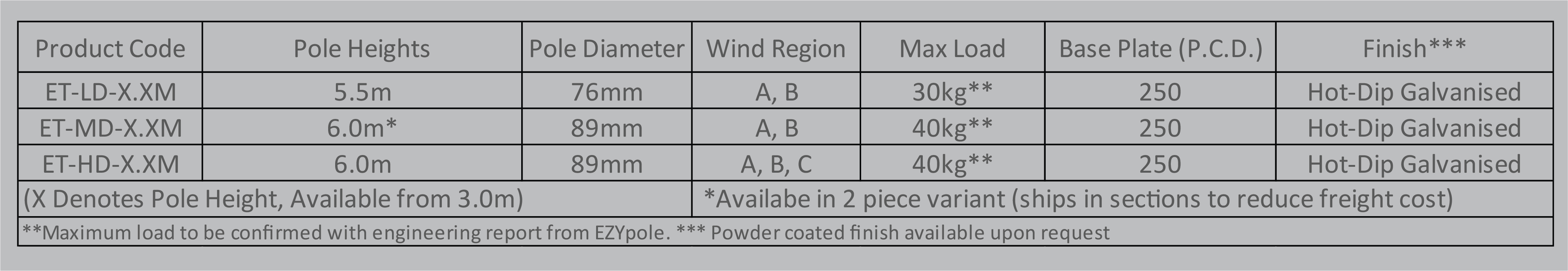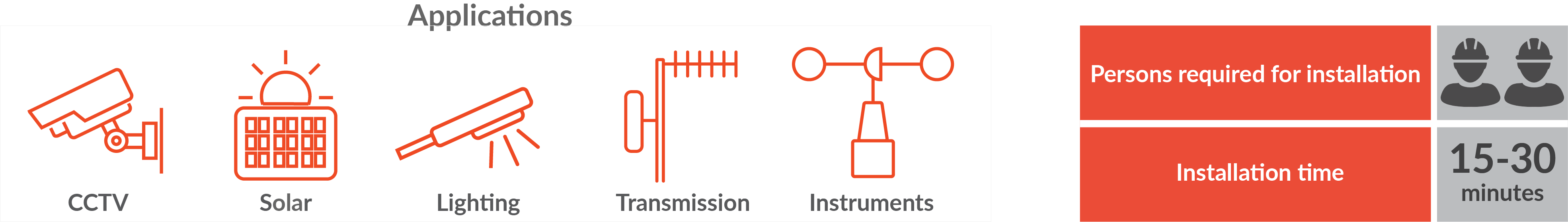 - Stable structure for all types of lighting, CCTV, monitoring and solar applications.